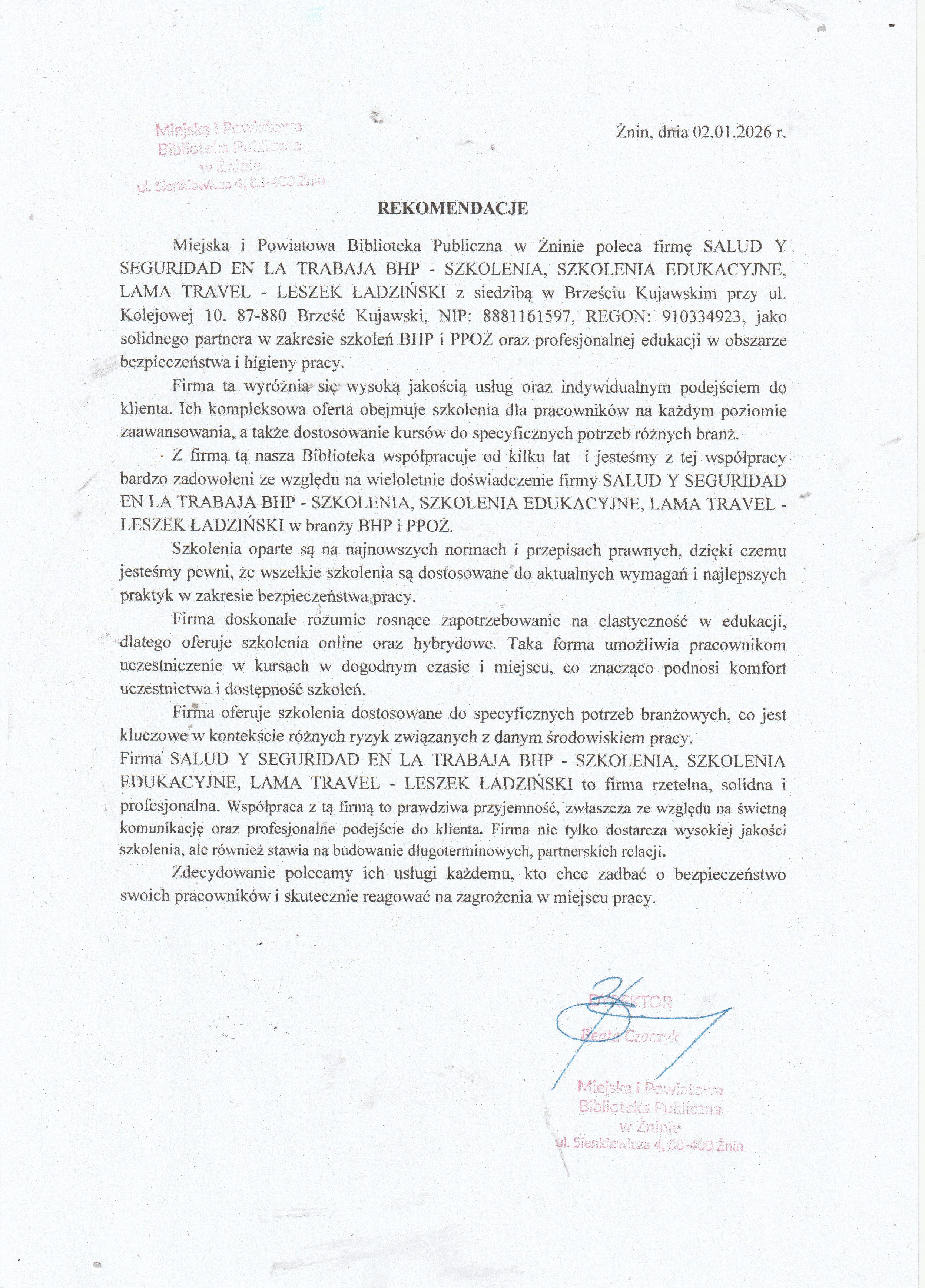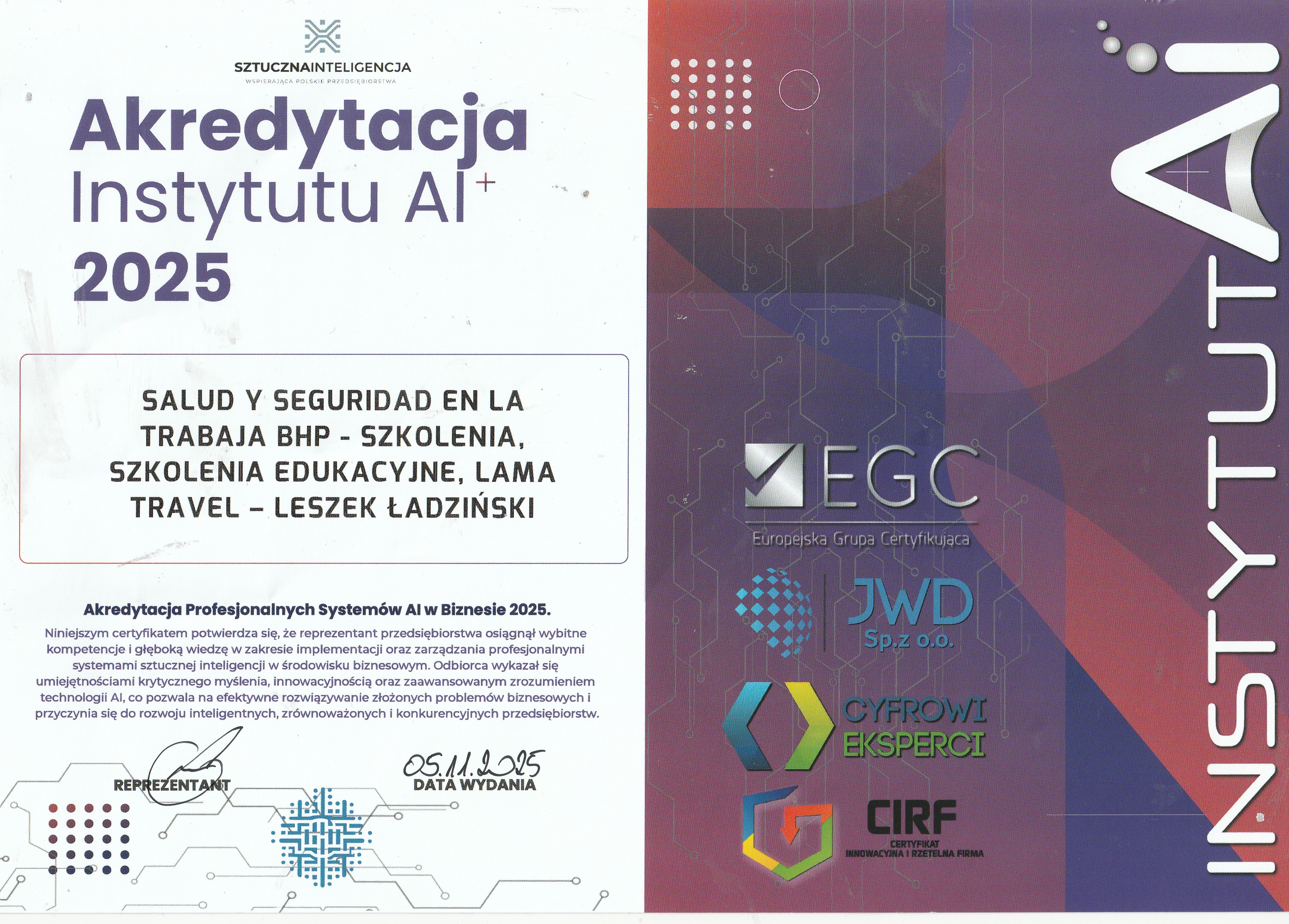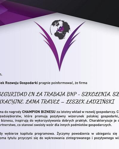Firma Salud Y Seguridad En La Trabaja BHP Szkolenia Lama Travel została laureatem nagrody "Ambasador Innowacyjności" podczas IV edycji Międzynarodowego Forum Gospodarczego.